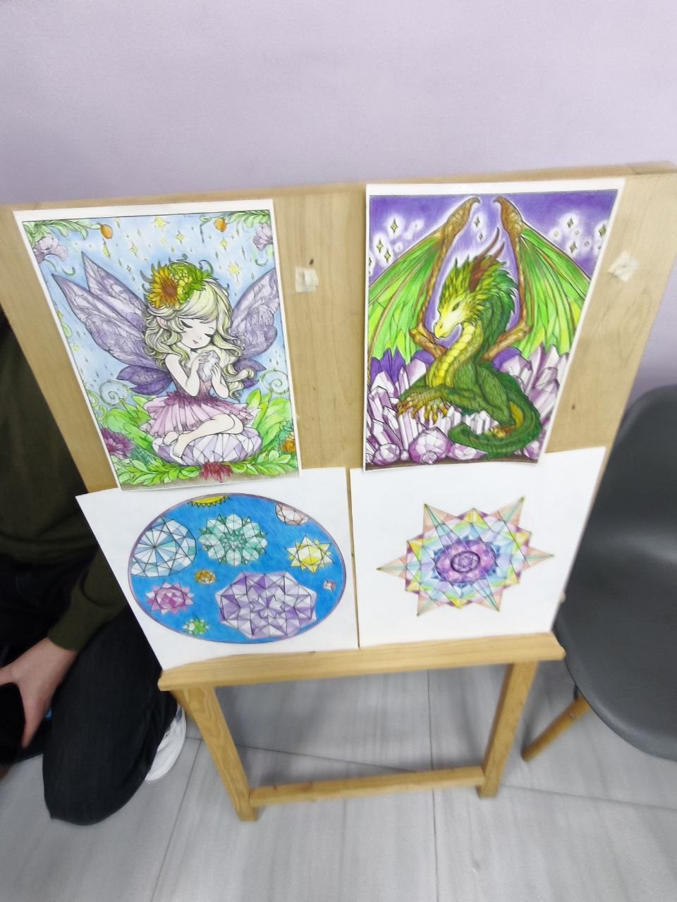 Смотрели видео про кристаллы. Рассказали немного о кристаллической вселенной. Как они образуются и для чего нужны. Попробовали с ними срезонировать и нарисовать.